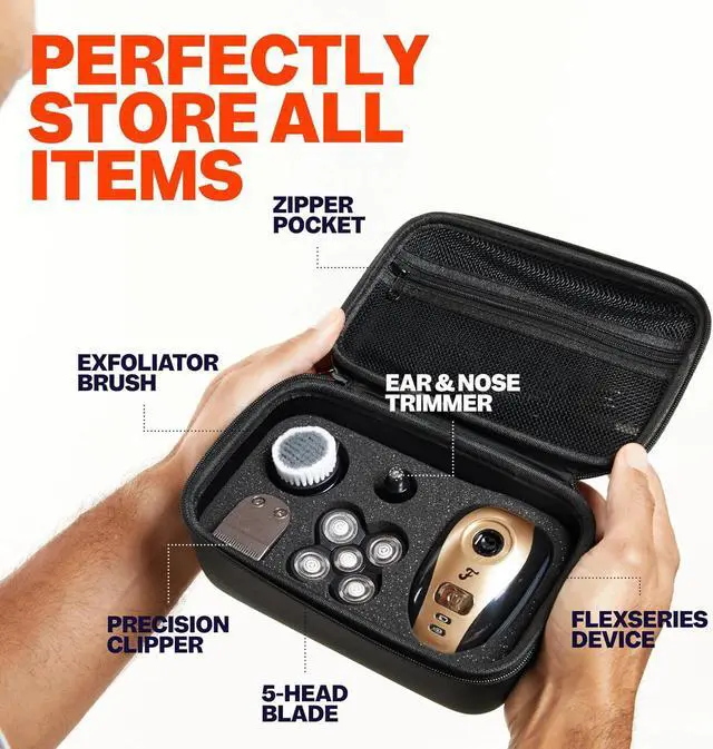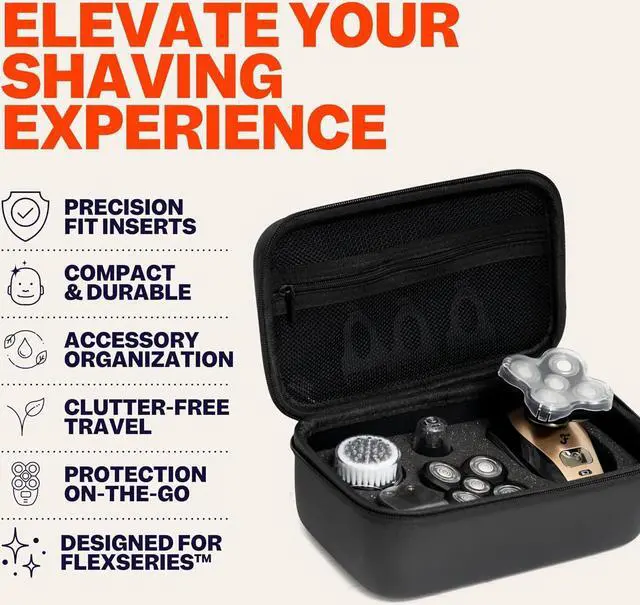 USER-FRIENDLY DESIGN. The case is built for ease of transport, ensuring your grooming routine remains uninterrupted, no matter your destination; note, FlexSeries Shaving Kit not included.