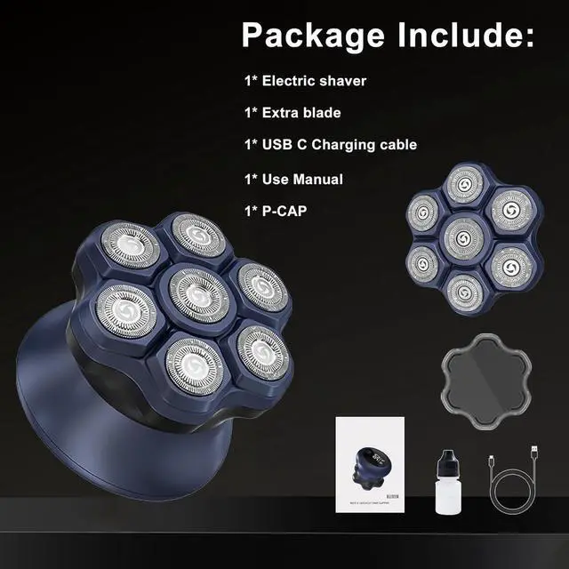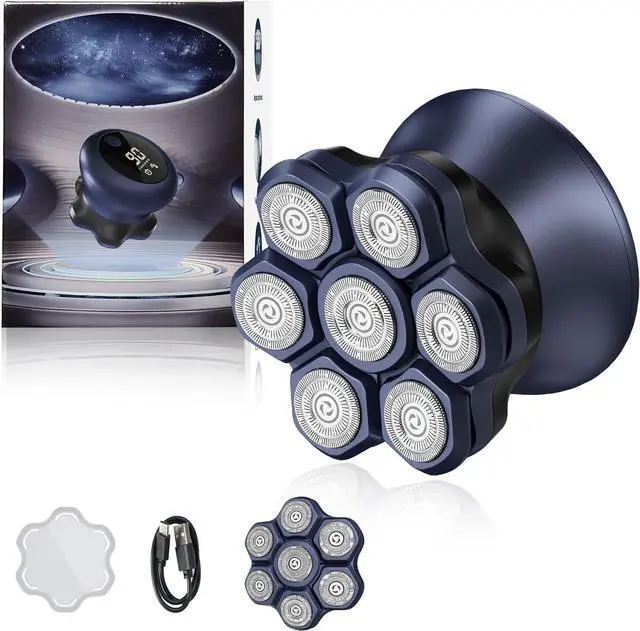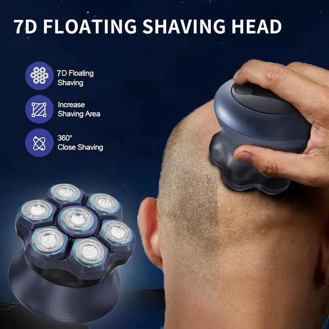 7D Rotary Shaving Headbald head shavers for men, 360° rotating head system for a precise fit to the curvature of the scalp. Dual-ring titanium mesh (outer ring catches 0.1 mm stubble/inner ring shaves stubborn roots) designed for balding men