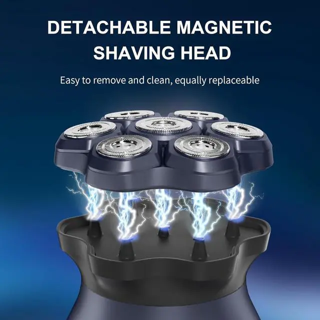 Detachable Magnetic Shavers Magnetic electric shaver features newly magnetic design, the ergonomic design allows you to easily feel the fit of the machine and shaver head for a quick shave. The entire blade can be removed in one second after shaving, allowing you to clean stagnant hairs easily