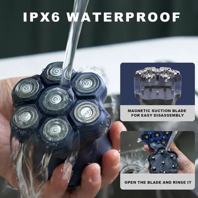 IPX6 Waterproofrotary electric shaver for bald men has an IPX6 waterproof rating with wet/dry shaving waterproof technology, it allows you to enjoy a comfortable dry shave or a refreshing wet shave without worrying about water damage or moisture affecting the device
