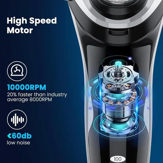 IPX7 Waterproof Mens Electric Shaver Fully waterproof design allows you to use the shaver in the shower and makes cleaning a breeze, offering both convenience and durability
