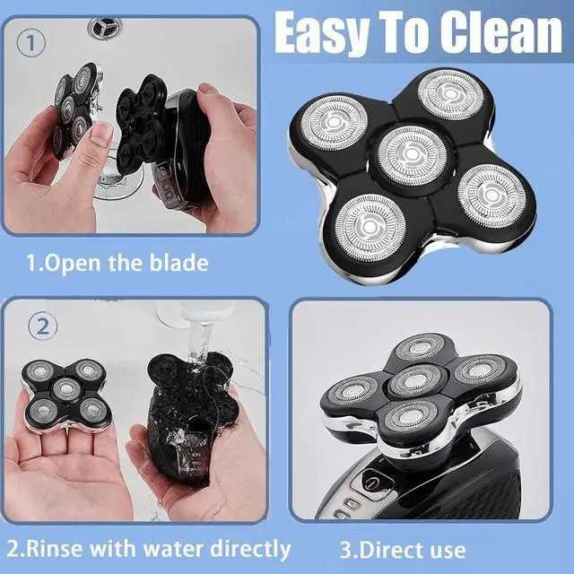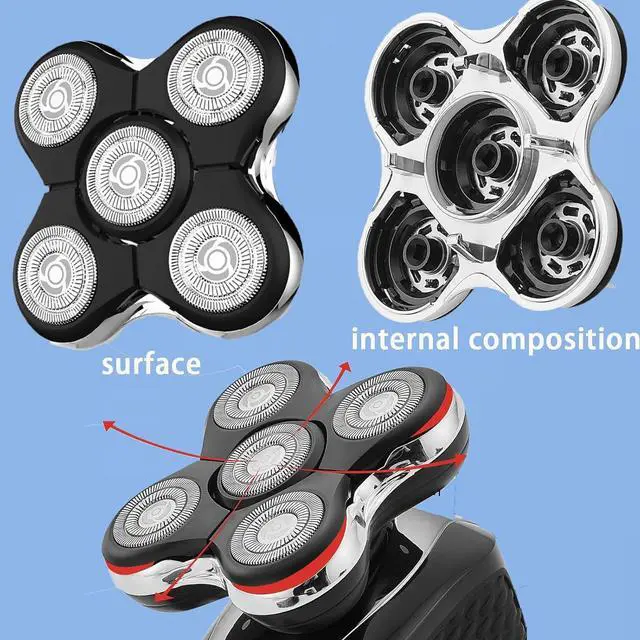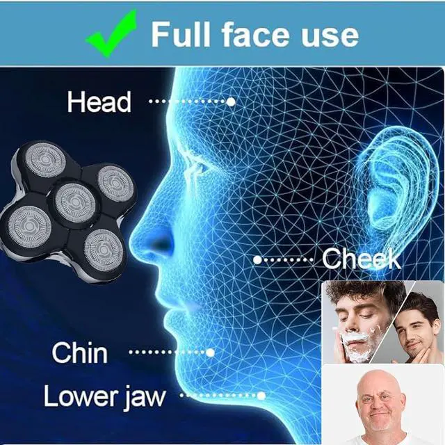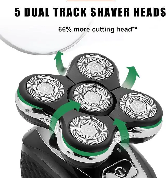 EFFICIENCY: 5 Dual Track Shaver Heads, Shaven Head In Under 2 Minutes.