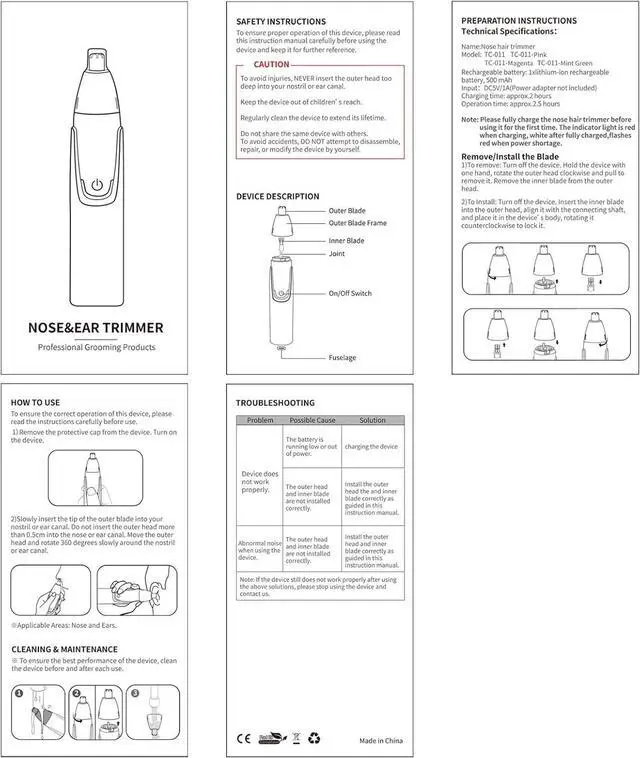 Multi-Purpose Trimmer for Multiple Scenes Utilize high-strength stainless steel blades for accurate trimming. Remove the nose, ear, eyebrow, beard, and face excess hair comfortably and efficiently. Sensitive one-touch control and portable design allow you to trim unwanted hair during travels, showing your confidence in any situation.