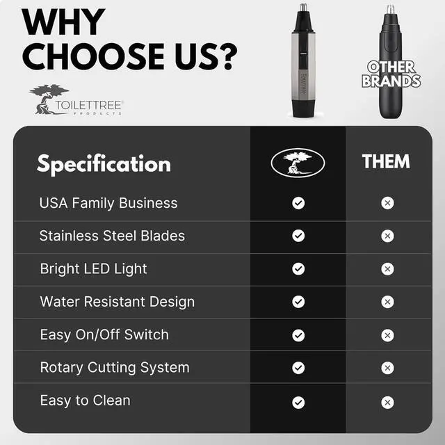 Ear & Nose Hair Trimmer: This battery-operated, cordless nose trimmer is made of high quality steel; it operates on just 1 AA battery, making it a convenient option