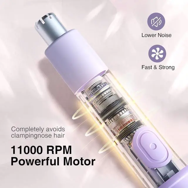 Powerful 11, 000 rpm MotorThe upgraded women nose hair trimmer is equipped with a 11, 000 rpm high-speed motor, exceeding most motors on the market, for faster trimming of nose hair. The operating noise is below 75dBA, allowing for use of the nose hair trimmer at any time and place.