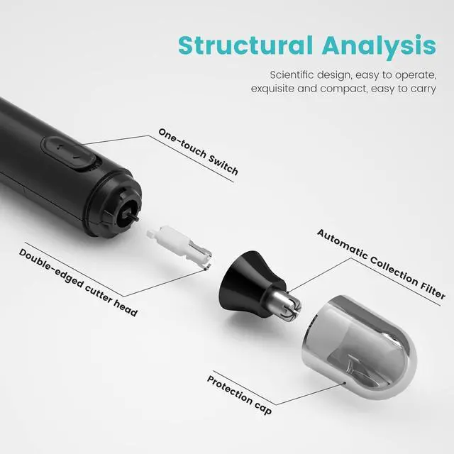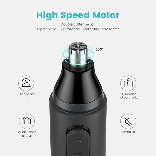 DUAL-EDGE SPINNING BLADESThis nose hair trimmer features a dual-edge spinning blades system with protective cover, inner 360° rotating design, which precisely removes the hairs without painful and unpleasant pulling. It is comfortable and easy to use. Let you show your best at work.