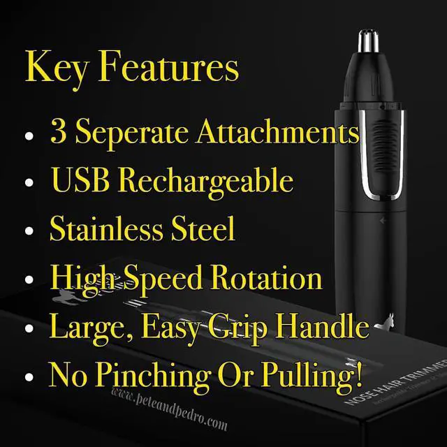 Versatile Trimming Tool: Nose & Ear Hair Trimmer + grooming accessories remove unwanted nose and facial hair safely and pain-free. No pinching or pulling included with 360 degree high speed rotation. Made of stainless steel. Super quiet buzzing for nose hair removal.