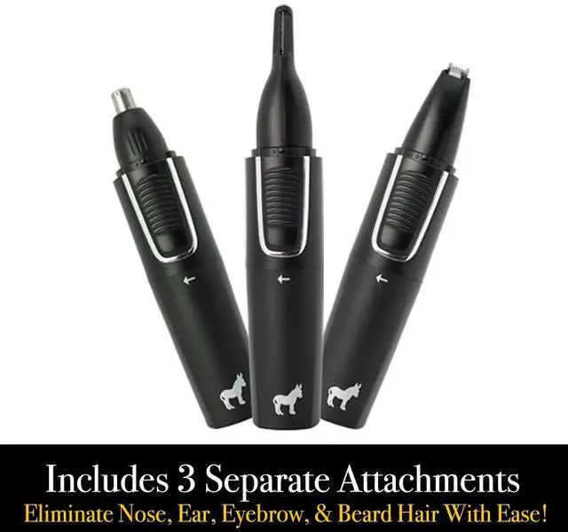 3 Accessory Heads: Trimmer includes 3 accessories including the nose & ear hair cutter, eyebrow/mustache hair shaper, and facial hair carve shaper. Great for trimming hair around nose, ear, brows, beard, mustache, and sideburns. Keep your facial hair in tip-top shape!