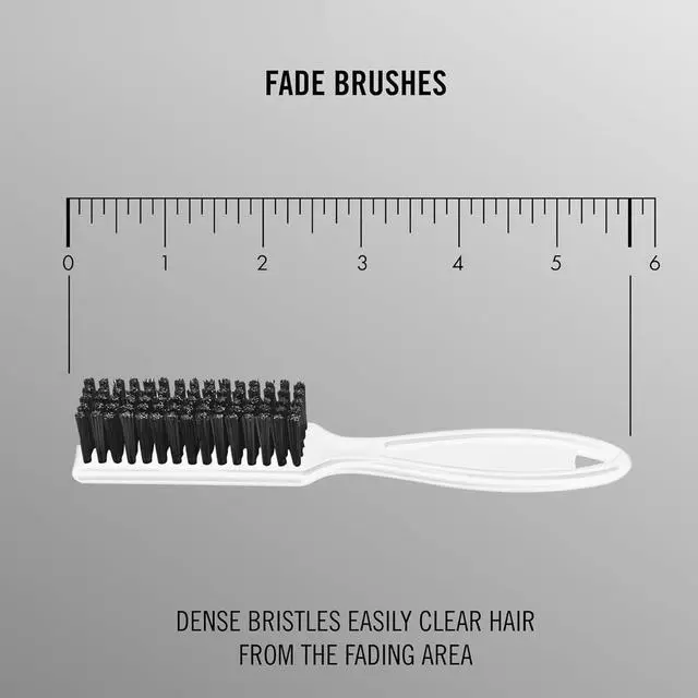 Black Fade Brush Cleaning brush for removal of excess hair from clients, cutting tools, and blades. Soft nylon bristles can be sterilized with spray and will dry easily. Compact ergonomic size.