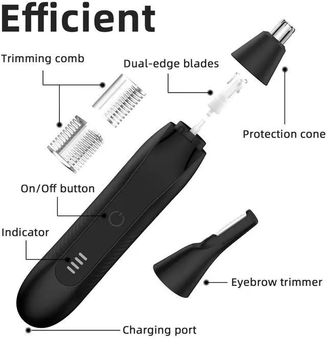 Nose hair trimmer with eyebrow trimmer head and eyebrow trimming comb, easily trim the eyebrows to the same length.