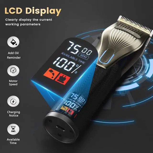 Hair Clipper for Men, Professional Electric Hair Cutting & Trimmers Set with 7500RPM Powerful Motor & LCD Display, Mens Cordless Hair Grooming Kit Barbers Haircut, Gift for Birthday Christmas