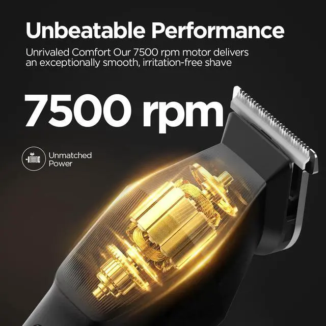 , : A New Comfortable Trimming Experience. Equipped with a powerful 7500rpm motor and ceramic blades, this men's electric shaver features a Full-Size trimmer head with a precisely calibrated blade gap and R-shaped 360° skin-friendly rounded blades. This innovative design enhances safety, reduces friction, and allows fast yet smooth trimmingwithout pulling or irritating your skin.