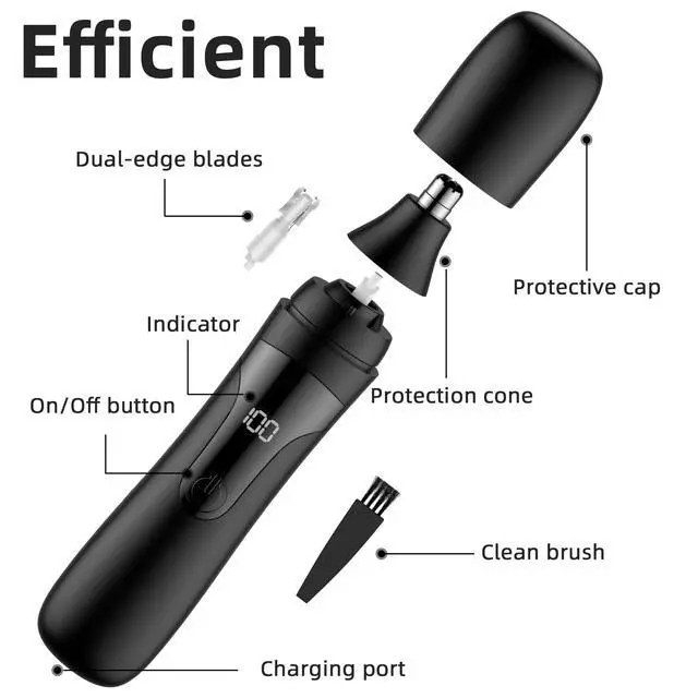 This nose and ear trimmer for men is equipped with a rechargeable USB Type-c cable and a built-in battery to ensure sufficient power anytime and anywhere without buying more batteries.