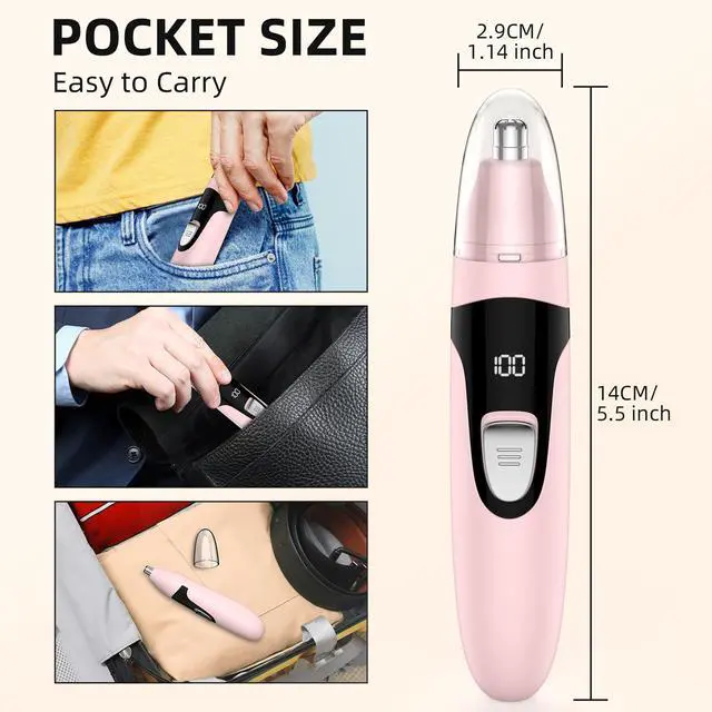 This nose hair trimmer made of high quality stainless steel with double tips and 0.1 mm thickness that remove unwanted hair quickly and accurately without causing painful pulling.