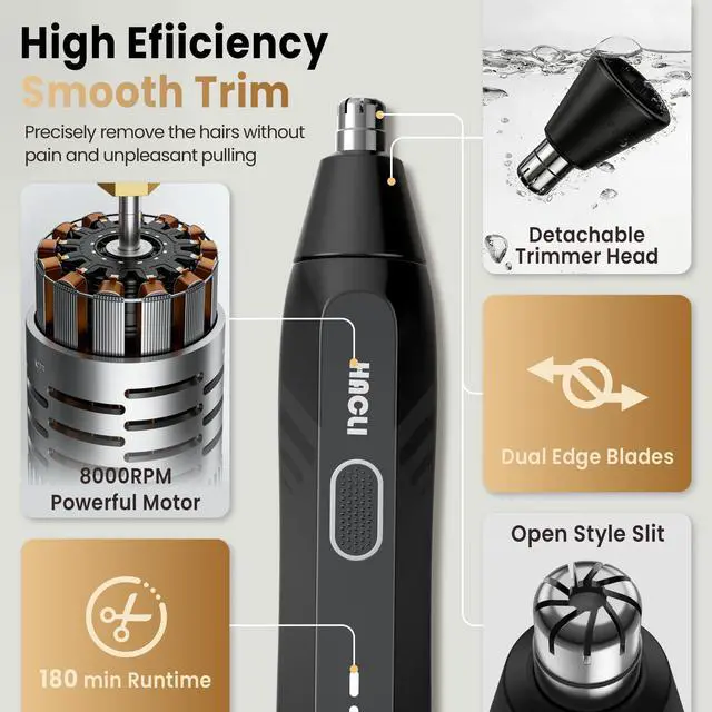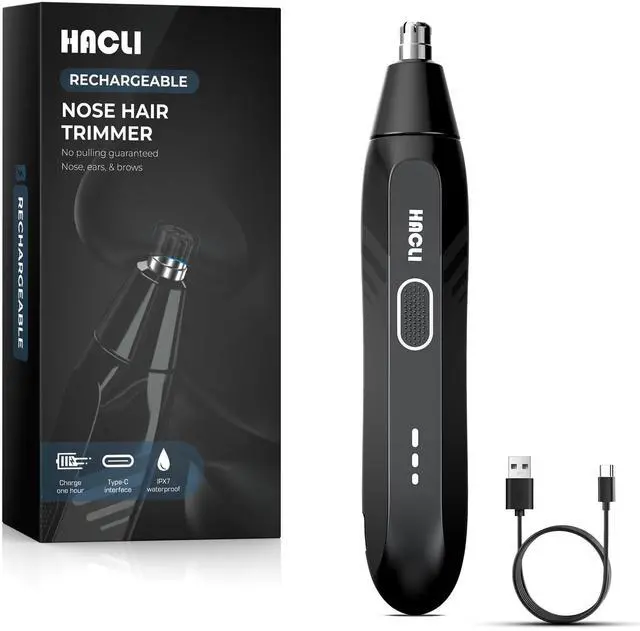 Nose Hair Trimmer for Men Women - HACLI Electric Painless Nose Hair Clipper, 8000RPM Powerful Motor, IPX7 Waterproof, Safe & Quiet, Replaceable Head, Travel Lock USB-C Rechargeable