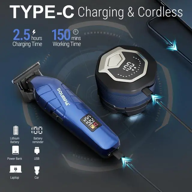 LED Display & Travel Lock: The LED display screen indicates the shaver's battery level and the remaining usage time. The shavers long press on/off button triggers a safety lock, avoiding accidental touching and extra power consumption.