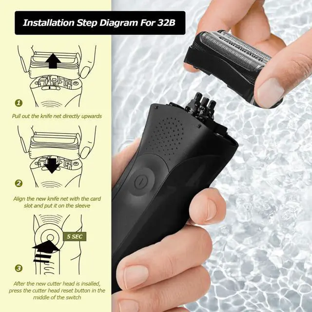 After-sale Packing: New 32B replacement head(Foil & cutters) x2 + 1 cleaning brush for easy maintenance. If you have any questions after receiving the product, please contact us in time, we will give you a satisfactory answer.