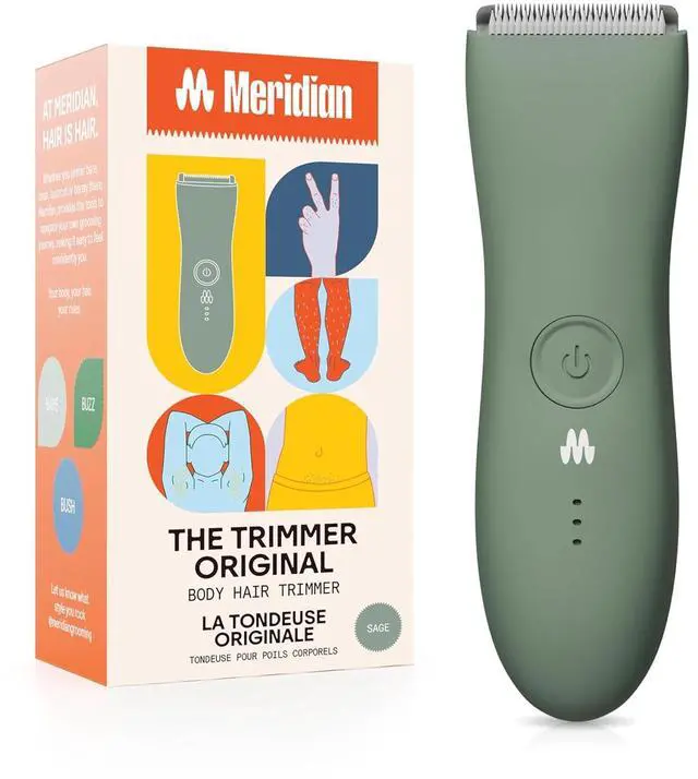 MERIDIAN The Trimmer Original - Body Hair Trimmer for Men, Electric Shaver for Pubic Hair, Chest, Legs & Bikini, Waterproof & Rechargeable, Sage