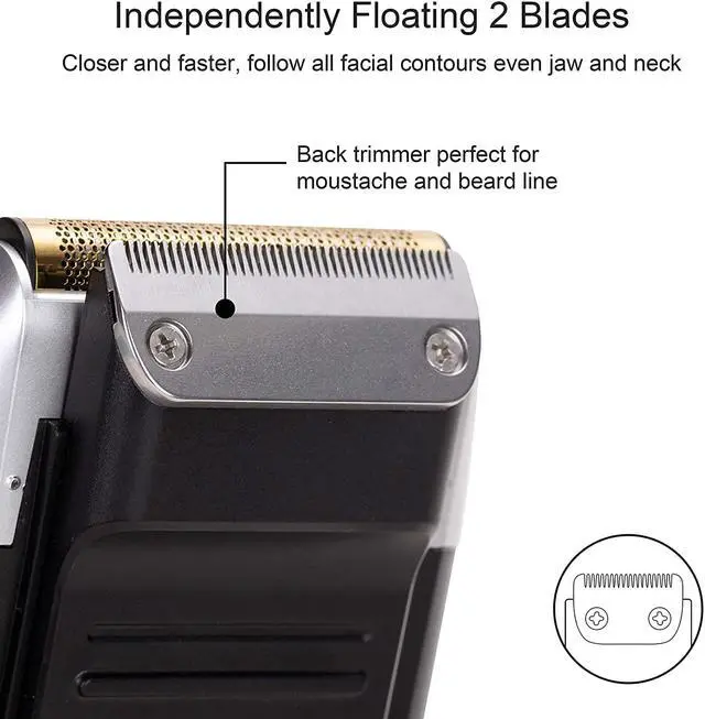 THE MAGIC OF CUT BALD & REMOVE STUBBLE: Two independent reciprocating sharp stainless steel blades with polygonal foil net to capture more beard and increase the shaving area, easy to use and save time. This allows you to get a close cut and very thorough shave every time even a quick shave is not an issue