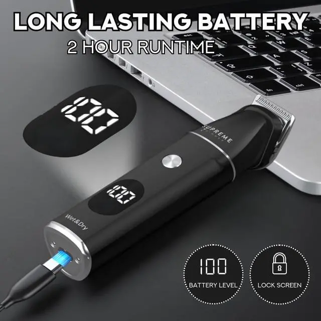 Long Battery Life + LCD Display Enjoy 120 minutes of cordless runtime on a full charge, with a clear LCD screen showing battery percentage. Use corded or cordless for continuous power ideal for daily use or trips.