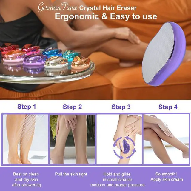 EASY FOR HAIR-FREE AND PAIN-FREE: Germantique crystal hair eraser is made by advanced nano glass techniques and premium craftsmanship, our latest designed hair removal surface is smooth and safe to the skin, gentle and effective to get hair-free painlessly just by rubbing the skin in small circular motions. You can get a professional hair removal treatment easily at home and on-the -go. Say goodbye to the traditional razor, shaver, waxing. or lasers. Try and enjoy Germantique hair removal way