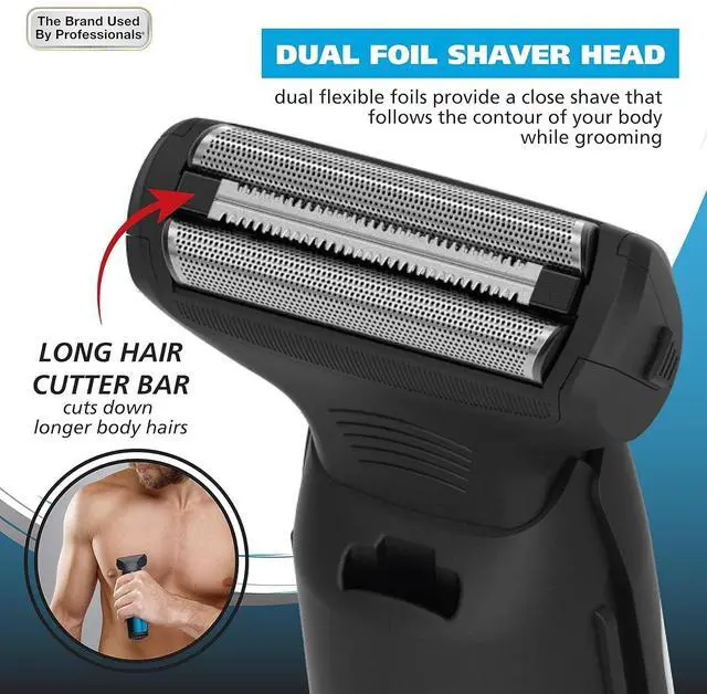 Dual Foil Shaver Head Features dual flexible foils for light and detail shaving that follow the contour of your body while grooming.