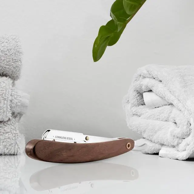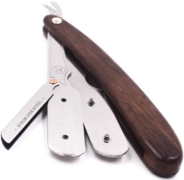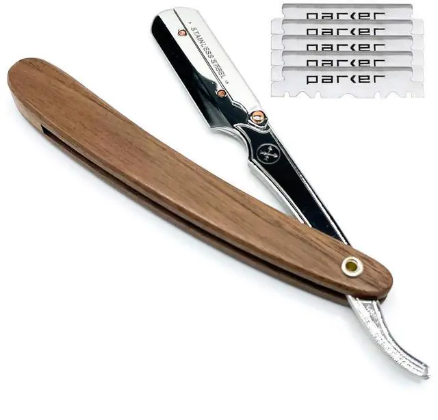Precision Craftsmanship Walnut Wood Handle & Stainless Steel Blade Arm Engineered with a durable stainless steel blade arm and a premium walnut wood handle, this professional straight edge razor delivers superior balance and control for barbershop-quality shaves at home.
