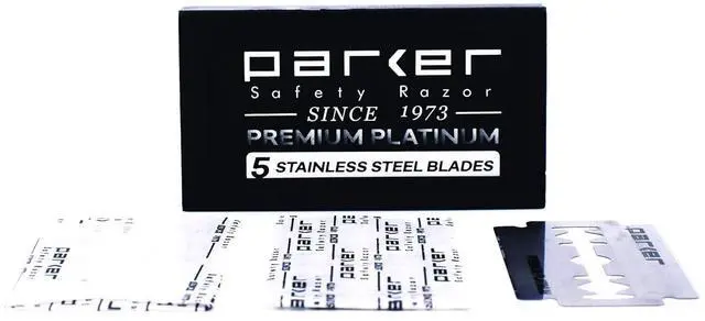 5 PARKER PREMIUM PLATINUM RAZOR BLADES INCLUDED - A world class razor shaves better with a world class razor blade. Parkers blades are manufactured with stainless steel from Sandvik of Sweden and coated with a proprietary platinum and polymer blend for long lasting and smooth shaves. All razor blades are not the same. See the Parker difference!