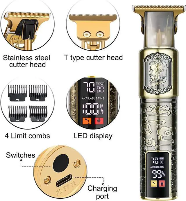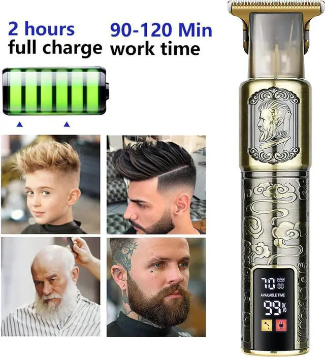 LCD Display & Long Battery Life: The mustache trimmer is equipped with a digital display that shows the battery life, alerting you when it' s time to charge. With a built-in rechargeable lithium-ion battery, this cordless hair clippers provide over 150 minutes of operation after a 2-hour charge. You can take this hair clipper with you wherever you go, making it perfect for traveling or trimming hair by yourself or a barber.
