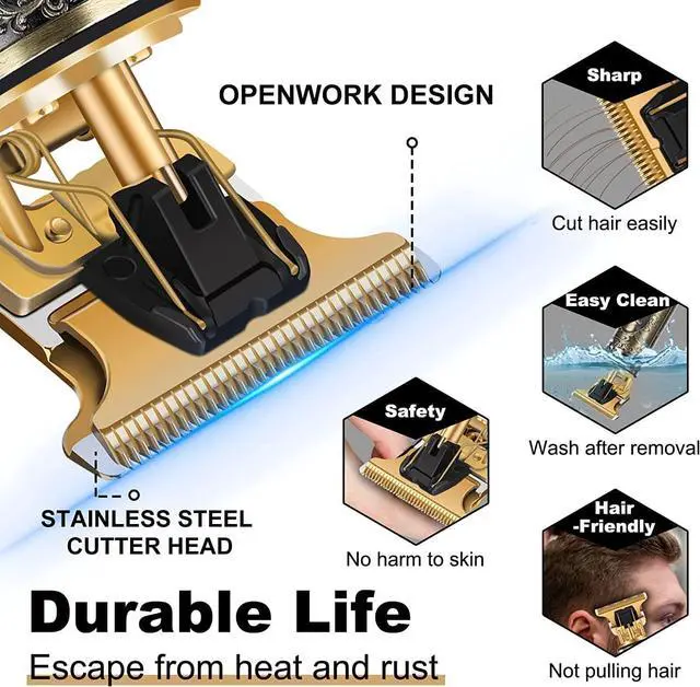 Ultra-Sharp Titanium T Blade: Our premium blade provide smooth and precise trimming. This barber clippers can evenly trim through all types of hair without irritation. The fade clippers for men come with a T-liner blade that can be close to the skin for a zero-gap trim, giving you a clean and close shave without pulling or missing any hair. Whether you need to trim your beard, body hair, or mustache, or complete a linear trim of your hair, this hair trimmer is the perfect choice for you