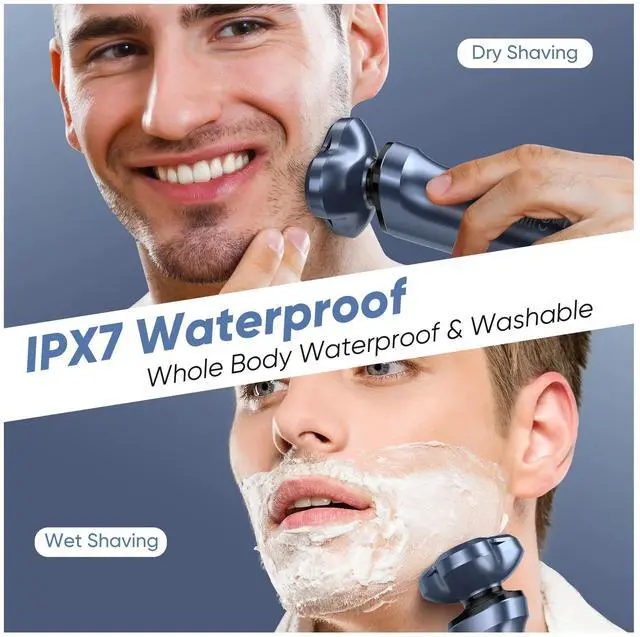 WET AND DRY USEThis is an IPX7 waterproof whole body washable electric rotary shaver, allows you to use this shaver wet or dry even in the shower. Removable razor head and washable body make it easy to clean it directly under faucet, and all electronic parts inside the shaver are protected.