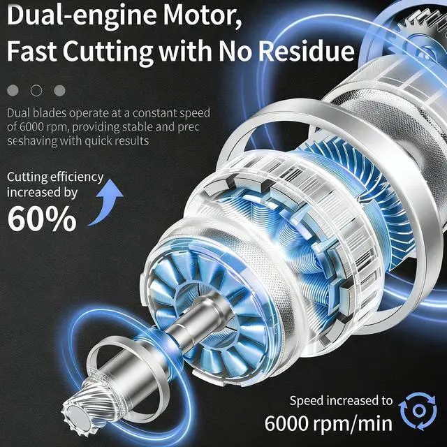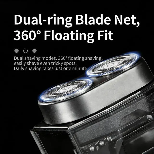 The Shaver features a dual-ring blade net with 360° floating contour follow, adapting to facial curves for a close, comfortable shave. Powered by a dual-engine motor running at 6,000 RPM, it delivers consistent high-speed performance for efficient, tug-free trimming. Type-C fast charging offers flexible power options via power bank, laptop, or USB outlet. With an IPX6 water-resistant rating, its easy to rinse clean. Lightweight at just 98g, its built for travel and everyday convenience.