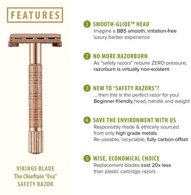 PACKAGE CONTENT 1 safety razor (single blade razor), 5 platinum-coated Swedish steel mild blades. This is the ideal gift or present for birthdays, anniversaries, Christmas, Valentines, Mothers day.
