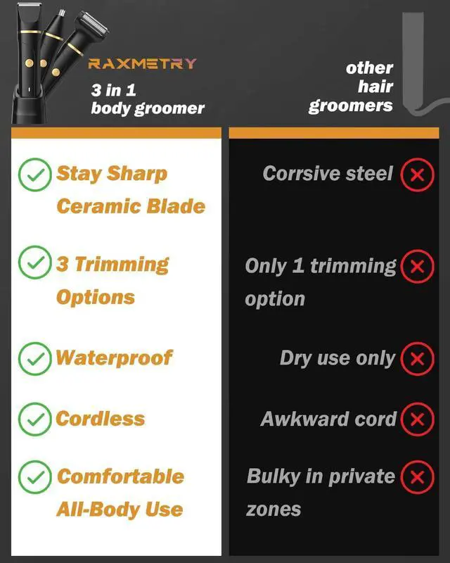 VERSATILE GROOMING: 3-IN-1 design allows for precise grooming of both body and armpit /nose hair. This manscaped body hair trimmer for men Perfect for trimming hair, beard, nosehair, back hair, chest hair, groin hair, pubic hair, ball hair, bikini hair, and underarm hair. Two combs (3/6/9/12mm) ensure safe and easy body hair trimming.