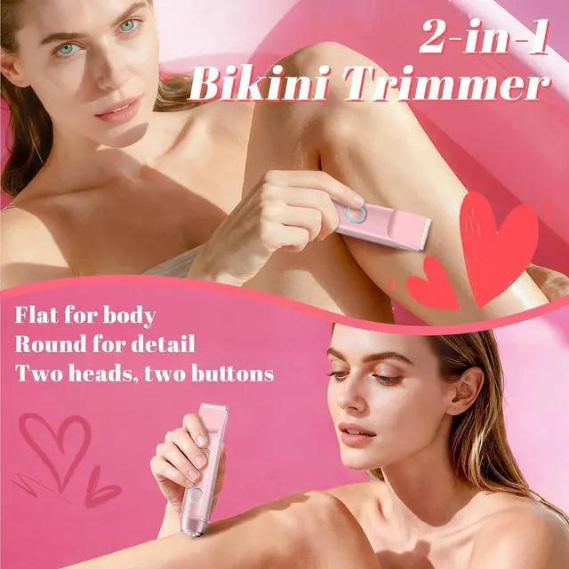 ,,: Flat head for legs, arms, and underarms. Round detail head for shaping the bikini line and small areas. Each head has its own button for simple, no-guess switching. Round head is not recommended for uneven or highly sensitive areas.