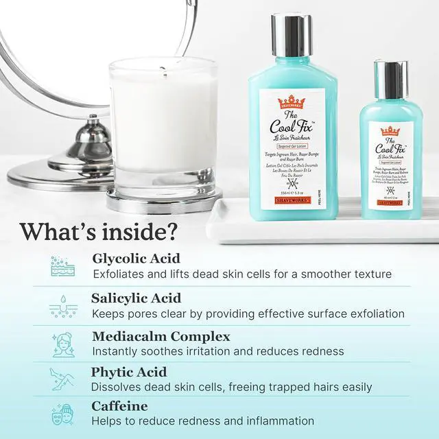 • IMMEDIATELY SOOTHES IRRITATION Made for women, this cooling gel calms down skin on contact, easing inflammation and razor burn caused by waxing and shaving. Caffeine reduces redness and gets rid of irritated pores.