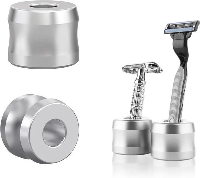 Linkidea 2 Pack Safety Razor Stand, Opening Dia 0.7" (18.5mm) Aluminum Alloy Men's Shaving Stand for Bathroom Countertops, Silver