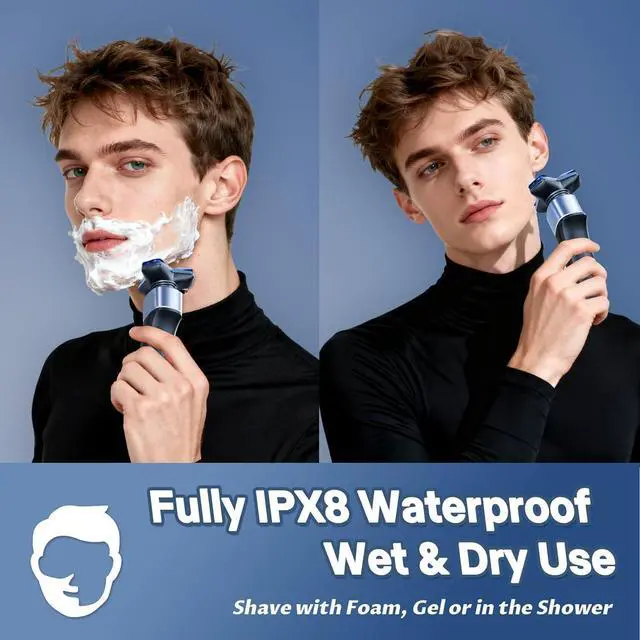 IPX8 Full Waterproof Shave Any Way You Like: Designed for modern routines, this electric shaver for men is fully submersible and perfect for wet or dry use. Shave comfortably with foam/gel in the shower, or go for a quick dry shavethen rinse easily under running water.