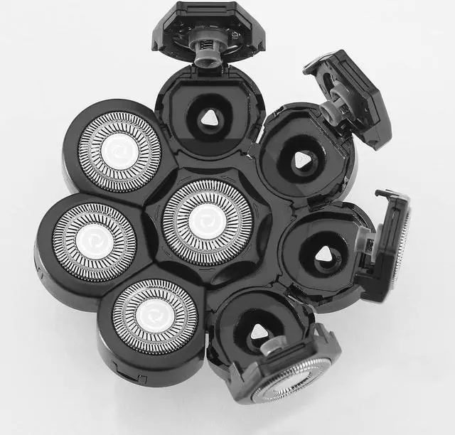 New technology, new materials, high quality. Men' s Electric Shaver Replacement Heads 8 Blades, Double-ring hypoallergenic stainless blades. offering closer and cleaner trimming without skin irritation. 8 Heads 8D Head Shaver Replacement Head.