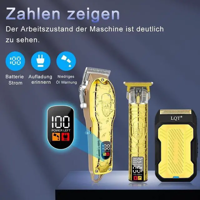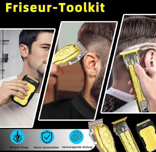 PROFESSIONAL HAIR CLIPPERS SETThe LQT professional hair clipper set perfectly matched to create any hairstyle you want, metal embossed body design, unique scissors logo, this haircut kit not only can show your style taste, but also meet your daily haircut needs, perfect for home use, barbershop and travel.