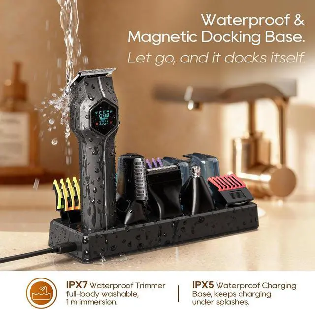 Magnetically Aligned Always Organized. The TrimX Waterproof Magnetic Docking Base keeps every trimming head neatly aligned with strong magnetic forceno fumbling, just easy, organized storage. It resists water splashes during use and is perfectly tailored for your bathroom routine, making daily grooming simpler.