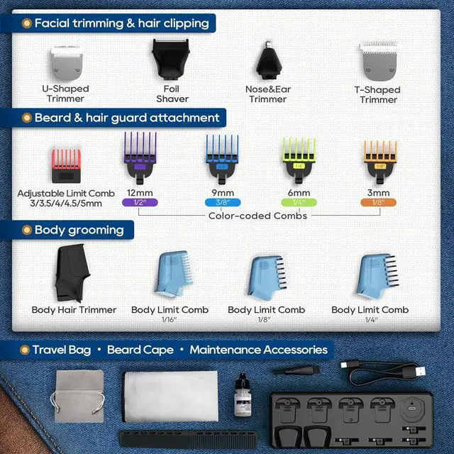 Expert Grooming Gentle on Sensitive Skin. The I-shaped handle ensures a secure, non-slip gripgiving you full-body control without slipping. The V-shaped blade glides gently across sensitive zones, while three precision comb attachments let you choose lengths simply and preciselyperfect for groin, chest, armpits, legs, and all body hair.