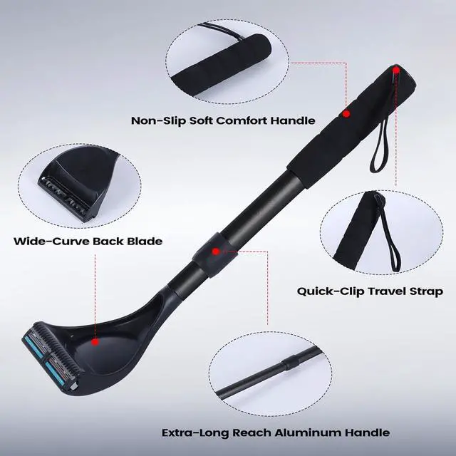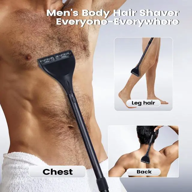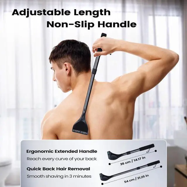 Retractable Long Handle - The back hair shaver for men is up to 21.1 inches in length, and up to 14 inches short for your various usage scenarios, the ergonomic and comfortable handle makes it easy to reach all your hard-to-reach spots. Also, it can be used to shave your back and body both wet or dry