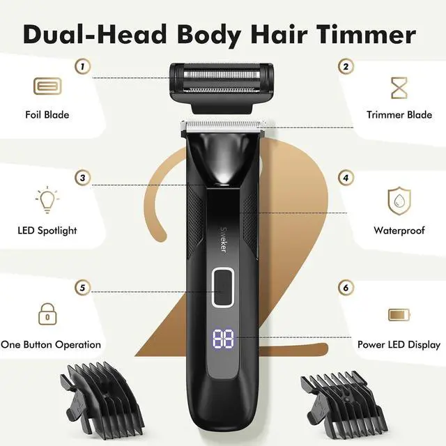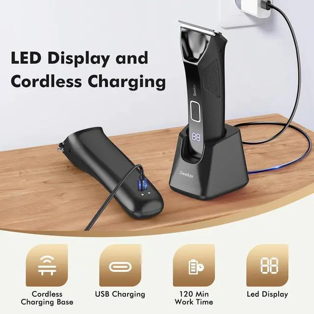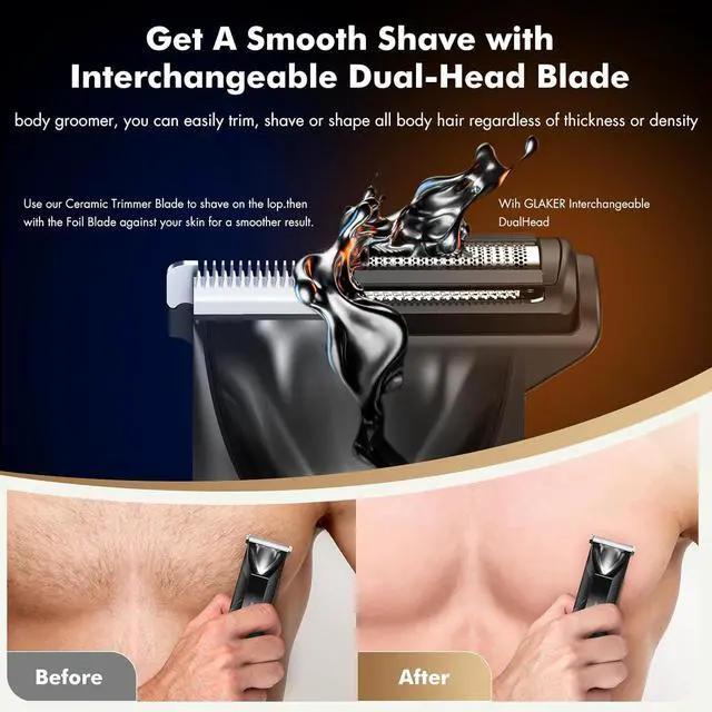 Trimming: This innovative dual-head professional hair trimmer for men features interchangeable ceramic and foil blades, offering a smooth, irritation-free grooming experience. With a high power motor reaching 7200RPM, hair trimmer effortlessly glides over sensitive areas, ensuring precise grooming for all hair lengths across various body parts.