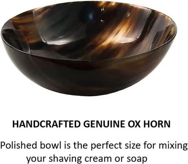 HANDCRAFTED OX HORN MATERIAL Constructed from genuine ox horn, this lathering bowl showcases natural grain patterns and a smooth polished finisheach one is unique. A timeless tool for traditional wet shaving rituals.
