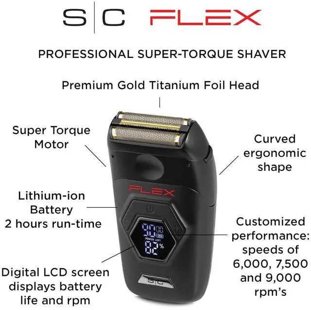 Digital LCD screen displays battery life and RPM, locking function can be activated when shaver is powered on or off. To activate hold down power button for 2 seconds, hold for another 2 seconds to unlock