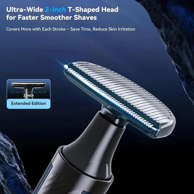 Multi-Functional Grooming Kit: Elevate your grooming routine with the WUXO back shaver for men, upgraded with a 2-inch (5cm) ultra-wide T-shaped head for faster, more efficient back shaving.