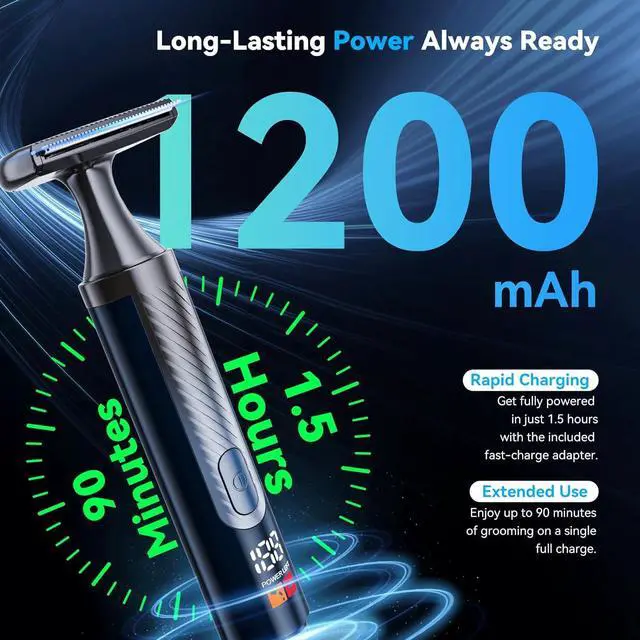 Dual Speed & Quick Charging: Back shaver for men electric offers 2 speeds, a 1200mAh battery, 1.5 h fast charge & up to 90 min use. LED shows exact battery level anytime