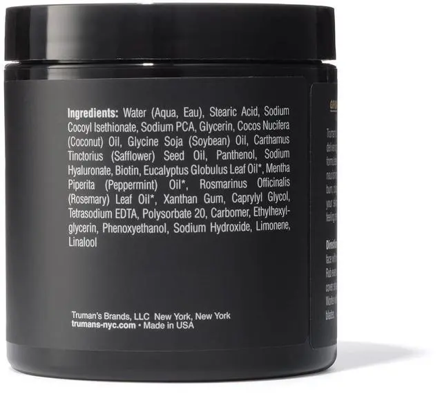 TRUMANS - THE MALE GROOMING EXPERTS: Our years of mens grooming salon experience has been incorporated into our product collection. Whether you try our Daily Facial Cleanser, Moisturizer, Shaving or post-shave productsTrumans is sure to become a favorite in your daily routine. Our products have been winners of Maxims Best of Grooming Men' s Health Grooming Awards & awards. Journal, and other popular mens magazines. Made in the USA.