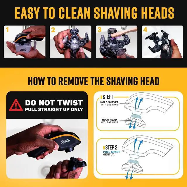 WATERPROOF & EASY TO CLEAN Bald head shaver is fully waterproof for wet or dry use, with cleaning indicator and rinseable design to remove hair buildup and prevent motor damage